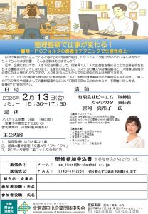 ◯テーマ:整理整頓で仕事が変わる!~書類・PCフォルダの最適化テクニックで生産性向上~(申込期限2月5日(木)〆)